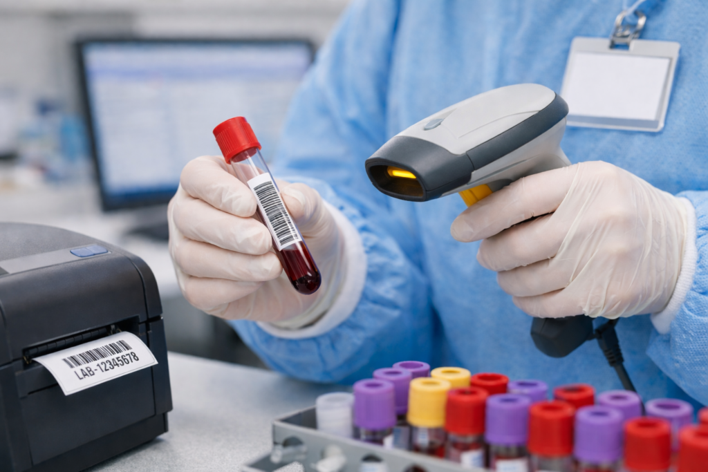 Medical laboratories may receive pre-barcoded specimens from external clinics and collection centres. During the pre-sorting stage, these samples are audited and cross-checked to confirm that the specimens received correspond to the tests requested. This includes verifying sample type, labelling, and completeness of accompanying documentation.